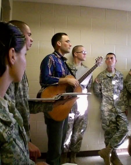 My final big step toward chaplaincy happened in Fall 2005. A Colonel Chaplain (R), Skip, and his wife Dawn, parents of a medically retired Force Recon Marine, and of two missionary daughters to Turkey and Indonesia, asked me to begin leading music worship with them for a Bible Study of 200 Soldiers in Basic Training. Many of the young Soldiers were heading to danger in the Middle East as Combat Medics, MPs, and “88 Mike” Truck Drivers, to serve during the Surge of forces designed by Generals Petraeus and McChrystal. It was called “COIN”, a counterinsurgency strategy to win hearts and minds, and build democracy among Iraqis and Afghanis. I reluctantly said “Yes” to the Bible Study, but did not truly feel HOOAH enough to stand in front of Soldiers. I liked occasionally smoking tobacco pipe and a Hookah, wearing Birkenstocks and hemp necklaces, playing guitar and reading classics like Dostoevsky and 20,000 Leagues Under the Sea. How would these hardened warriors receive me??