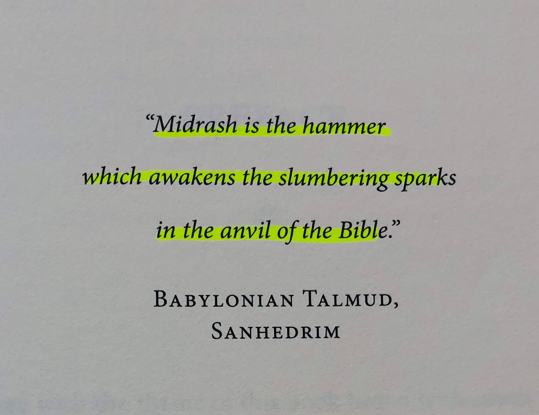 “Midrash (interpretation) is the hammer which awakens the slumbering sparks in the anvil of the Bible” Opening Epigraph